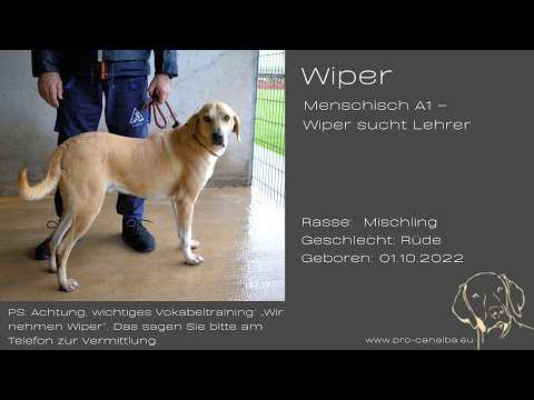 Zu mir: Die Tierschützer sagen, ich sei überschwänglich, lebhaft und neugierig – also quasi ein wandelndes Ausrufezeichen auf vier Pfoten. Ich bin sehr unternehmungslustig und nutze mein Maul zur Kommunikation (ich nenne das sprachliche Kreativität, andere nennen’s „Dauerdurchsage mit Schwanzwedel-Untertitel“). Wenn man mich lassen würde, hätte ich schon einen Podcast. Stattdessen hab ich Beton, Gitter und ein Echo, das meine Witze besser findet als die meisten hier. Ich nenne das kommunikative Ausdauerprüfung, die anderen sagen „Wiper redet zu viel“. Dabei will ich doch nur endlich fließend menschisch sprechen!